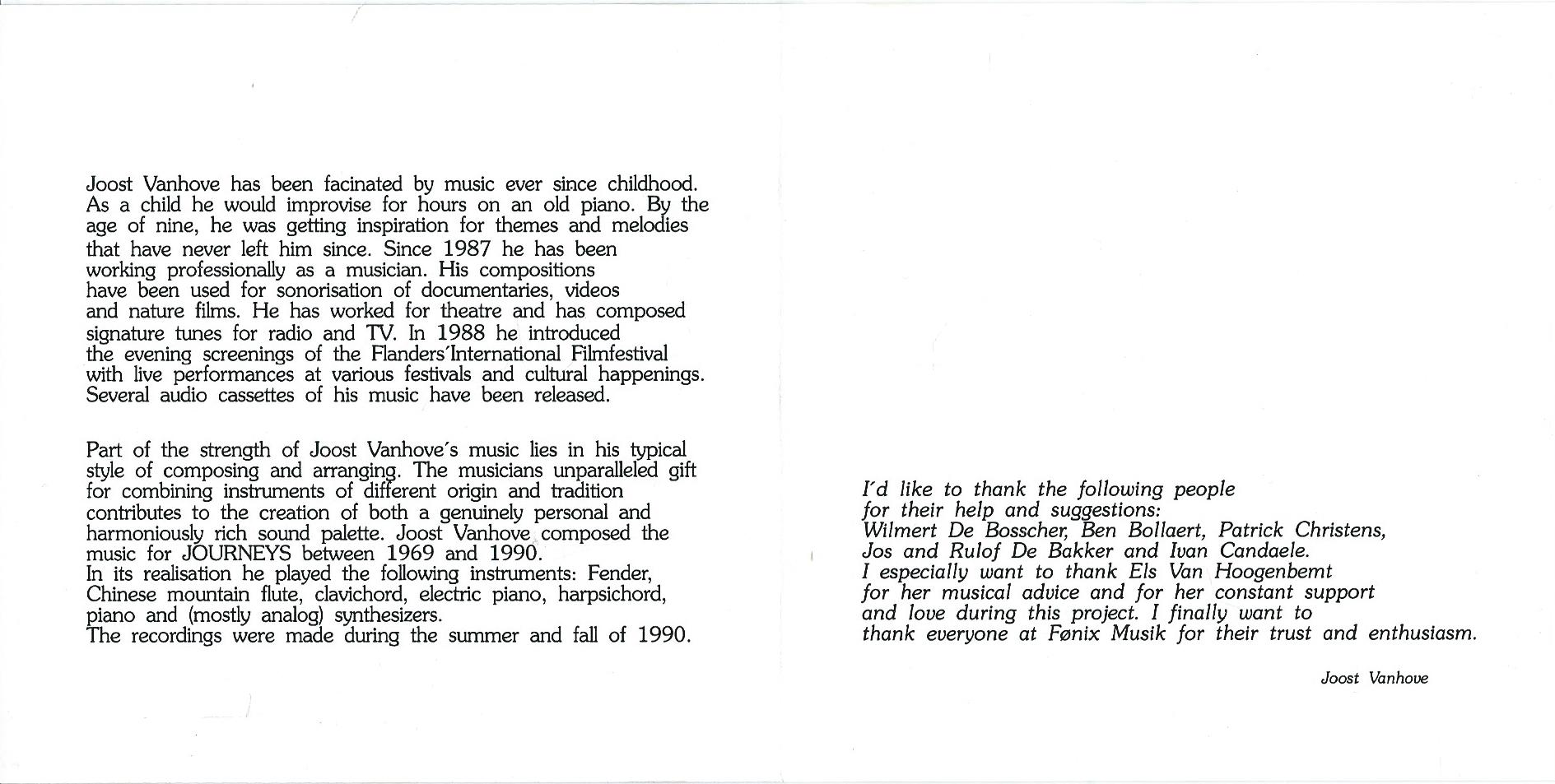 CD – JOOST VANHOVE – JOURNEYS - 1990