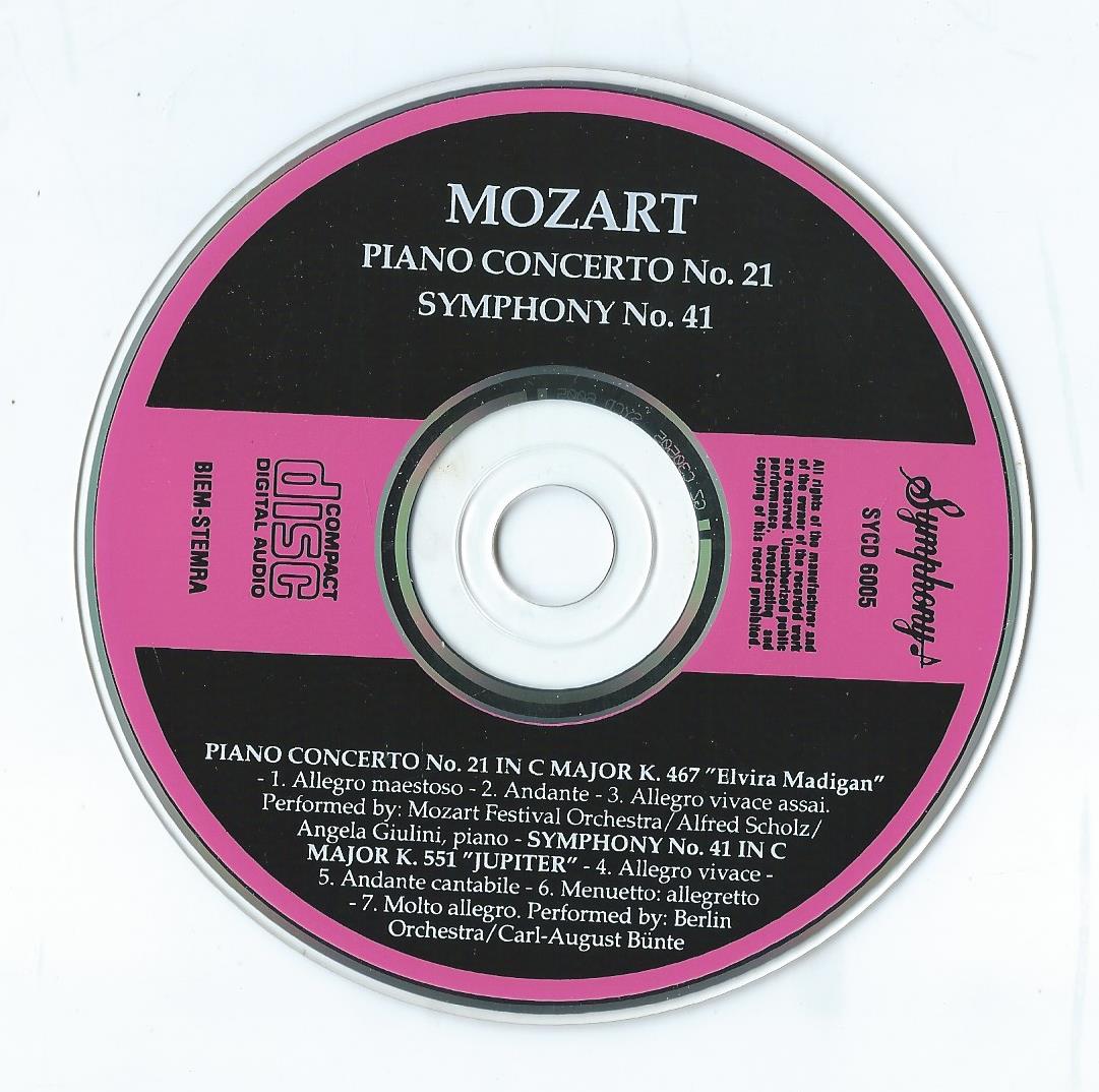 CD – MOZART – Symphony No. 41 'Jupiter' / Piano Concerto No. 21 'Elvira Madigan' - 1991