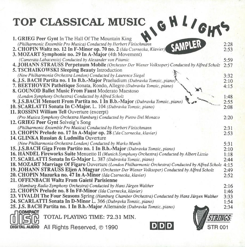 CD – Various – TOP CLASSICAL MUSIC – HIGHLIGHTS SAMPLER - 1990