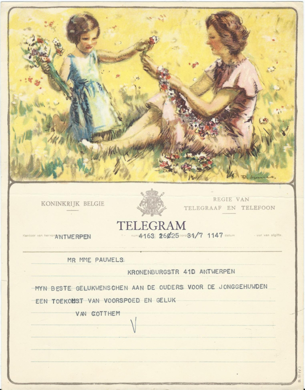 Uitg.: KONINKRIJK BELGIE – REGIE VAN TELEGRAAF EN TELEFOON – TELEGRAM