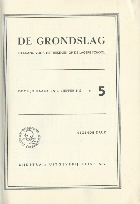de grondslag – LEERGANG VOOR HET REKENEN OP DE LAGERE SCHOOL 5 – JO HAACK EN L. LIEFFERING