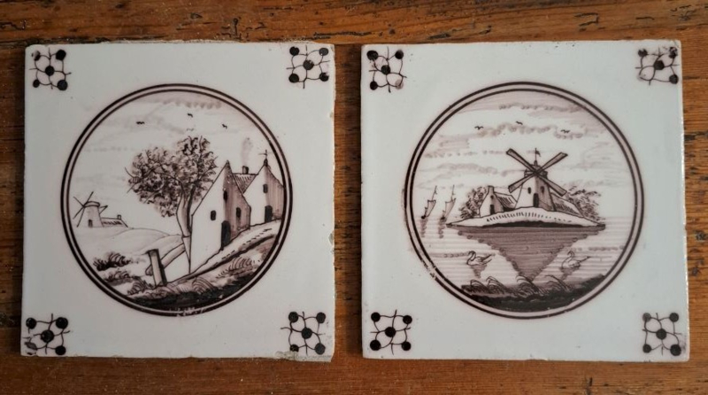 Antieke tegels, Delft, 18e eeuw – 2 stuks