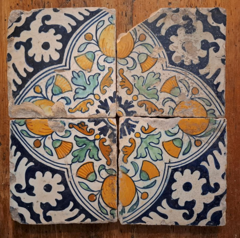 Antieke tegels, Delft – granaatappels - 17e eeuw - 4 stuks