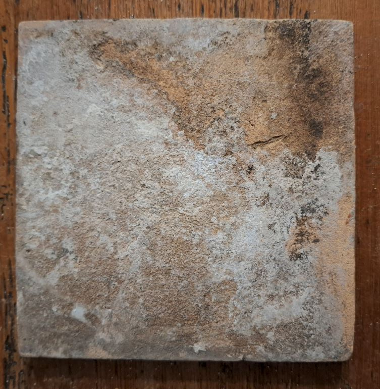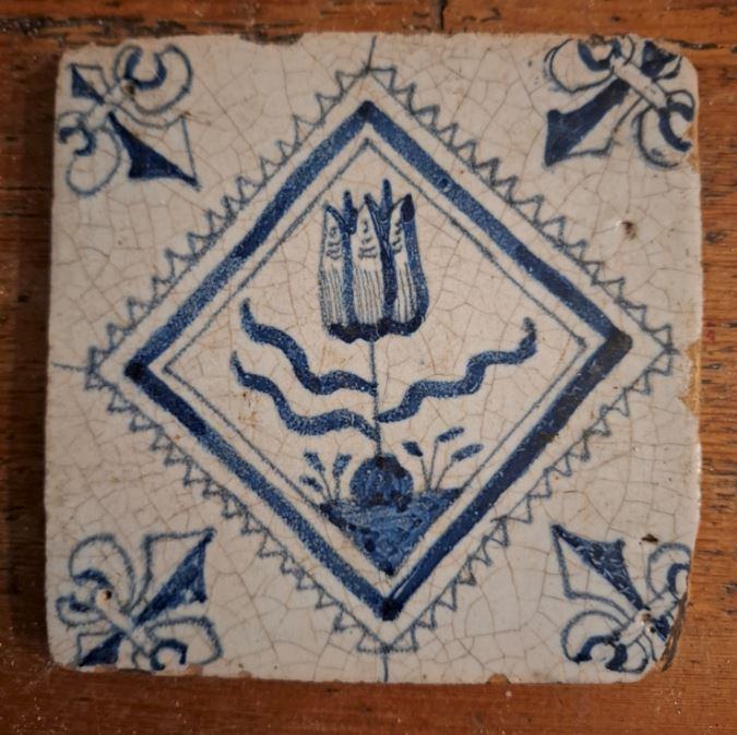 Antieke tegel - bloemdecor, Tulp in gekarteld vierkant – ca. 17e eeuw