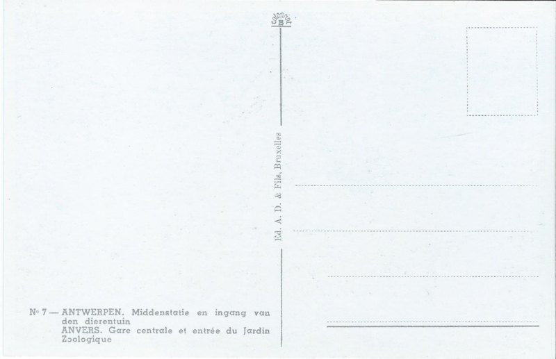 - No 7 - ANTWERPEN. Middenstatie en ingang van den dierentuin / ANVERS. Gare centrale et entree de Jardin Zoologique