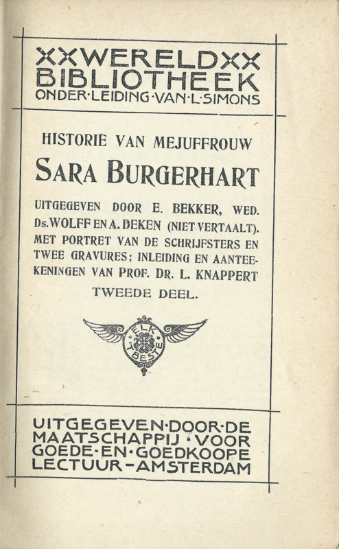 HISTORIE VAN MEJUFF. SARA BURGERHART – TWEEDE DEEL - WOLFF EN DEKEN – ca. 1905