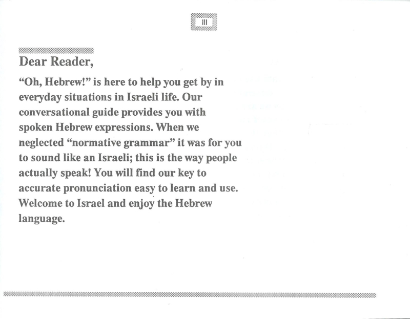 Oh, Hebrew – Hebrew Conversation Manual – NIRA TRUMPER - 1989