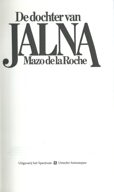 Opm.: De Jalna-serie bestaat uit zestien romans (in de uitgave van Het Spectrum uit 17 delen (deel 8 en 9 werden oorspronkelijk als een deel uitgegeven)) die het verhaal vertellen van de Canadese familie Whiteoak van 1854 tot 1954, hoewel elk van de romans ook als een onafhankelijk verhaal kan worden genoten. Voor een overzicht van de delen: zie afbeelding