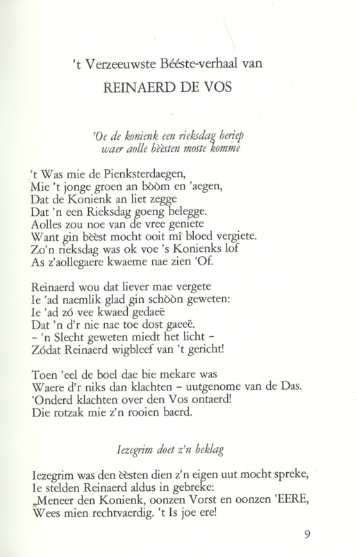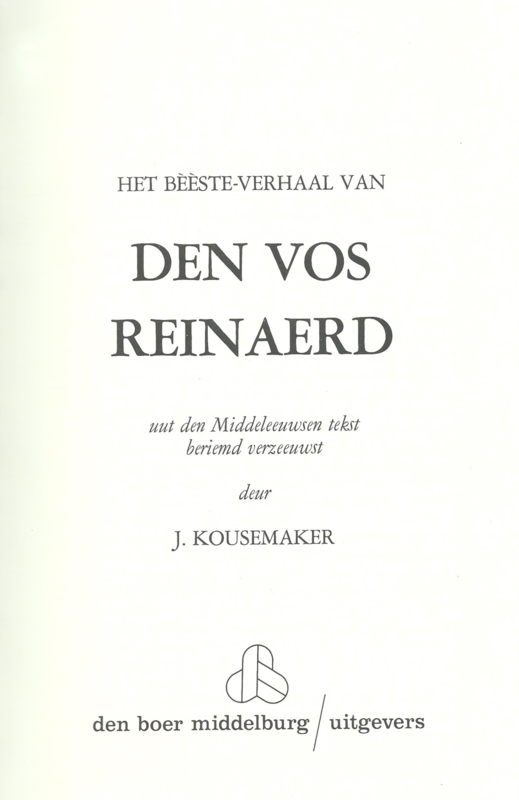 HET BÈÈSTE-VERHAAL VAN DEN VOS REINAERD; uut den Middeleeuwsen tekst beriemd verzeewst
