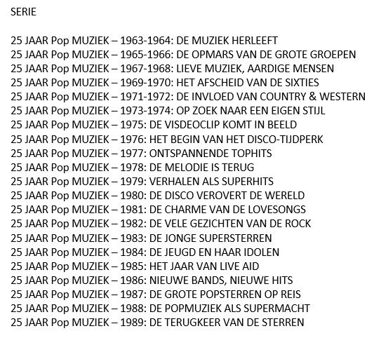 25 JAAR Pop MUZIEK IN WOORD, BEELD EN GELUID – 21 delen – 1963-1989