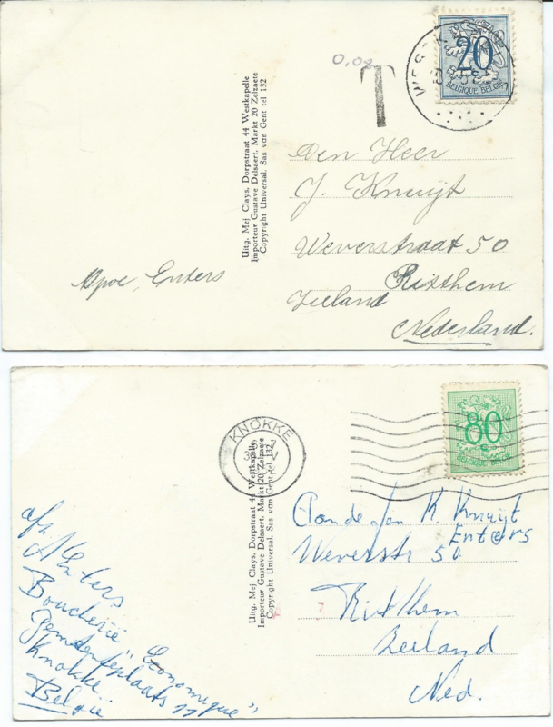SET van 2 ansichtkaarten – België – Westkapelle – ca. 1952