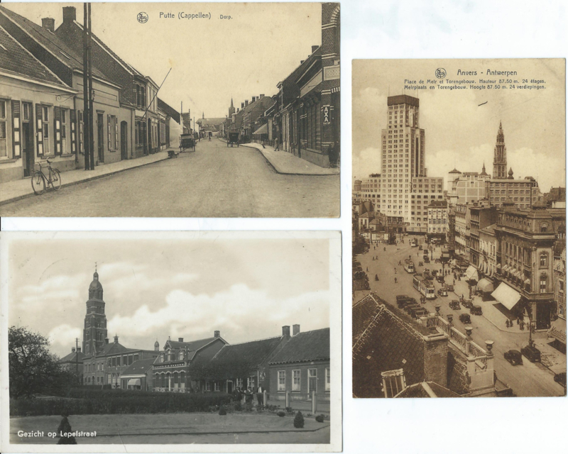 SET van 3 ansichtkaarten – België - Putte (Capellen), Lepelstraat, Anvers – Antwerpen