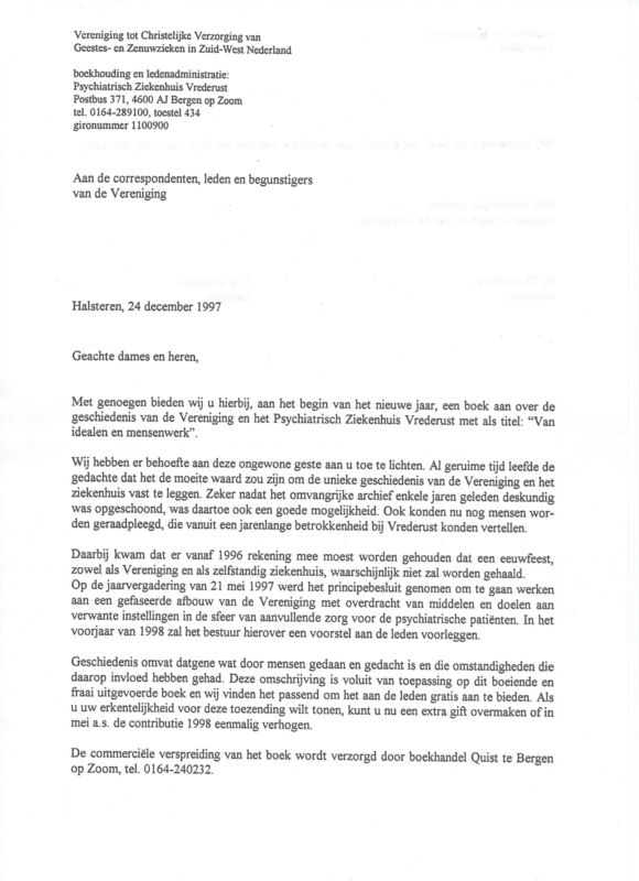 Uitg.: Stichting Christelijk Psychiatrisch Ziekenhuis Vrederust, Halsteren - 1997