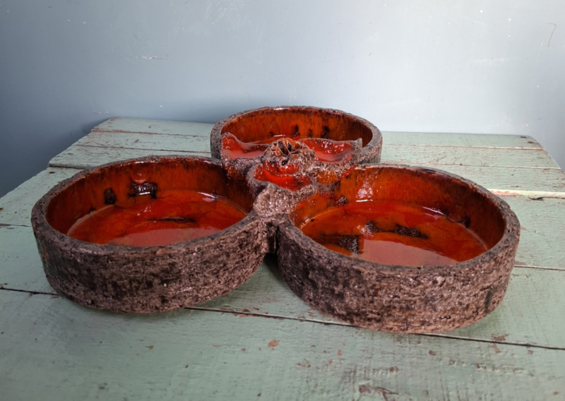 Vintage pindasetjeJaren '60 pindasetje in geel met zwart. Het grootste bakje is 7 cm. hoog en heeft een doorsnede van 15 cm. De 4 kleine bakjes zijn 4 cm. hoog en een doorsnede van 8 cm. Voor een onvervalst retrohapje.😁